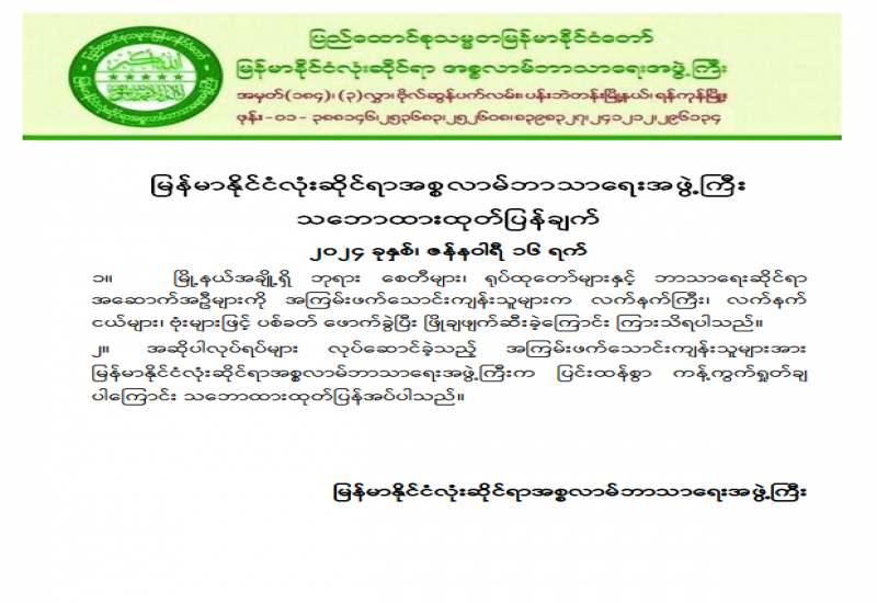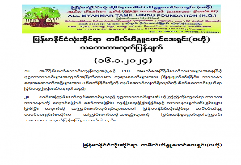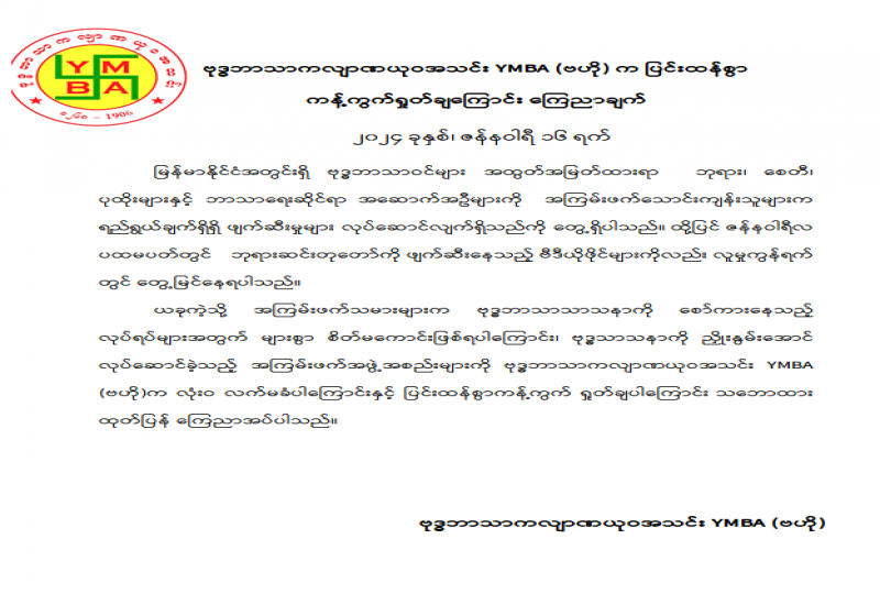 ဗုဒ္ဓဘာသာဝင်များ အထွတ်အမြတ်ထားရာ ဘုရား၊ စေတီ၊ ပုထိုးများအပါအဝင် အခြားဘာသာရေးဆိုင်ရာ အဆောက်အဦများ၊ ဘုရားရှိခိုးကျောင်းများကို အကြမ်းဖက် သောင်းကျန်းသူများက ဗုံးများ ပစ်ချခြင်း၊ လက်နက်ကြီးများဖြင့် ပစ်ခတ်ခြင်း၊ ဖြိုချဖျက်ဆီးခြင်း များအပါအဝင် အခြားအကြမ်းဖက်တိုက်ခိုက်မှုပေါင်းစုံကို ပြုလုပ်လျက်ရှိသဖြင့် မြန်မာနိုင်ငံ အားကစားမီဒီယာများအဖွဲ့ချုပ်က လုံးဝလက်မခံနိုင်ပါကြောင်းနှင့် ပြင်းထန်စွာကန့်ကွက် ရှုတ်ချပါကြောင်း သဘောထား ထုတ်ပြန်ကြေညာအပ်ပါသည်။