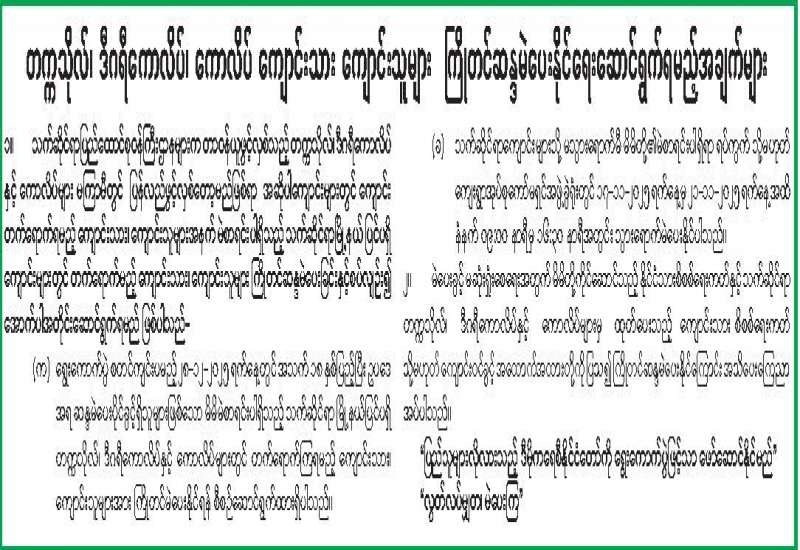 နေ့သင်တန်းများ ဖွင့်လှစ်ကြောင်း ကြေညာခြင်း