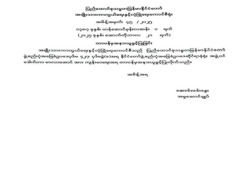 ၁။ ၂၀၂၅ ခုနှစ် ဒီဇင်ဘာလတွင် စတင်ကျင်းပမည့် ပါတီစုံဒီမိုကရေစီအထွေထွေရွေးကောက်ပွဲတွင် ပါဝင်ယှဉ်ပြိုင်ကြမည့် လွှတ်တော်ကိုယ်စားလှယ်လောင်းများသည် သက်ဆိုင်ရာကော်မရှင်အဖွဲ့ခွဲများတွင် ၈ - ၉ - ၂၀၂၅ ရက်နေ့မှ ၂၂ - ၉ - ၂၀၂၅ ရက်နေ့အထိ အမည်စာရင်းတင်သွင်းလွှာများကို တင်သွင်း ခဲ့ကြပြီးဖြစ်ပါသည်။