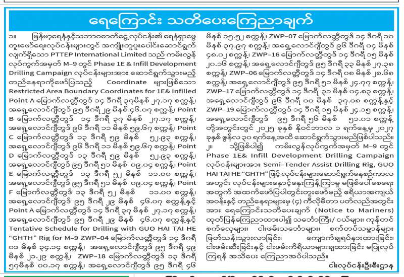 ဘဏ်ပိတ်ရက်ကြော်ငြာ