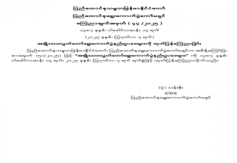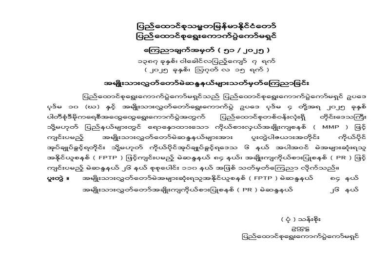 အမျိုးသားလွှတ်တော်ရွေးကောက်ပွဲနည်းဥပဒေများကို ထုတ်ပြန်ကြေညာခြင်း