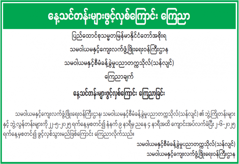 နေ့သင်တန်းများဖွင့်လှစ်ကြောင်း ကြေညာခြင်း