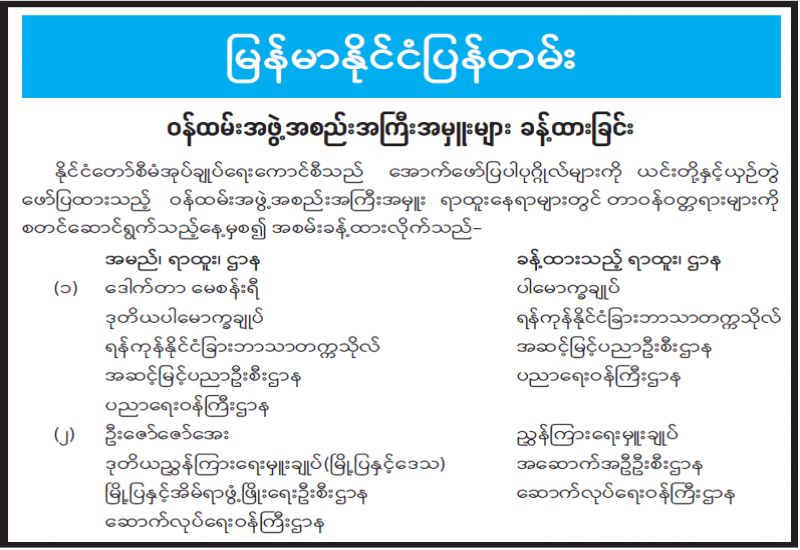 ဝန်ထမ်းအဖွဲ့အစည်းအကြီးအမှူးများ ခန့်ထားခြင်း