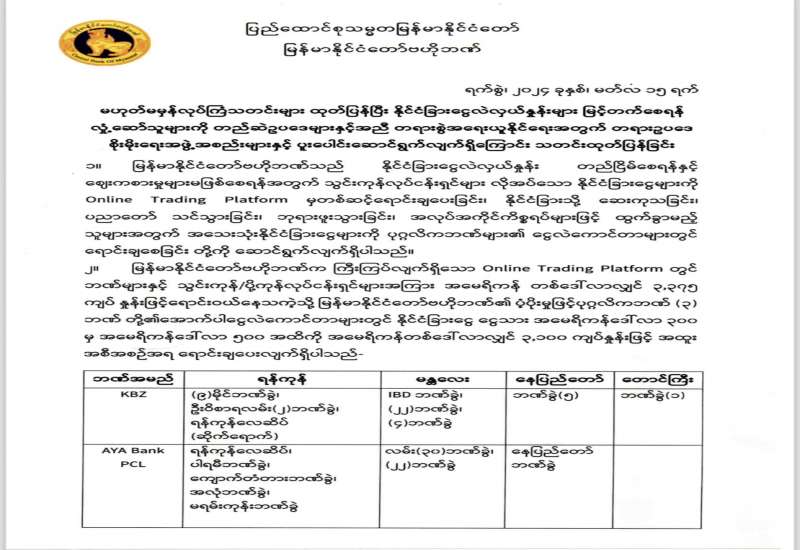 ၁။ အကောက်ခွန်ဦးစီးဌာနသည် ရန်ကုန်ဧရိယာ၊ မြဝတီနယ်စပ်ဒေသ၊ မူဆယ်နယ်စပ်ဒေသနှင့် ချင်းရွှေဟော်နယ်စပ်ဒေသတို့တွင် မြန်မာအလိုအလျောက် ကုန်စည်ရှင်းလင်းရေးစနစ်(Myanmar Automated Cargo Clearance System)ကို အသုံးပြုလျက်ရှိပြီး ယခုအခါ တိုးချဲ့ဒေသအဖြစ် တာချီလိတ်နယ်စပ်ဒေသတွင် ၂၀၂၄ ခုနှစ်၊ မတ်လ ၂၂ ရက်နေ့မှစတင်၍ အသုံးပြုသွားမည်ဖြစ်ပါသည်။