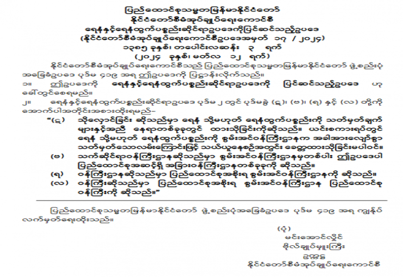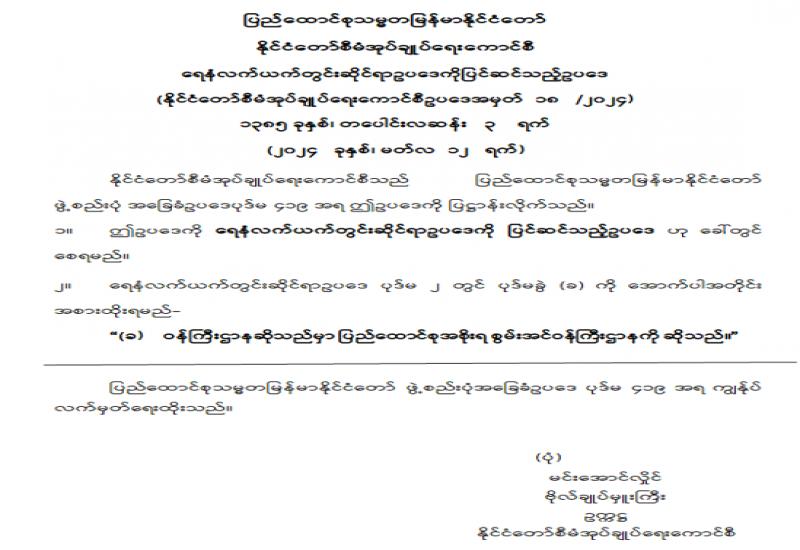 ရေနံနှင့် ရေနံထွက်ပစ္စည်းဆိုင်ရာဥပဒေကို ပြင်ဆင်သည့်ဥပဒေ