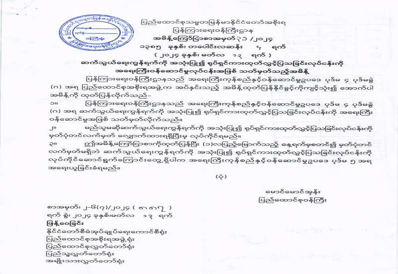 ပြန်ကြားရေးဝန်ကြီးဌာနသည် အရေးကြီးကုန်စည်နှင့်ဝန်ဆောင်မှုဥပဒေ ပုဒ် ၄ ပုဒ်မခွဲ (ဂ) အရ ပြည်ထောင်စုအစိုးရအဖွဲ့က အပ်နှင်းသည့် အမိန့်ထုတ်ပြန်နိုင်ခွင့်ကို ကျင့်သုံး၍ ဆက်သွယ်ရေးကွန်ရက်ကို အသုံးပြုကာ ရုပ်ရှင်ကားထုတ်လွှင့်ပြသခြင်းလုပ်ငန်း လုပ်ကိုင်ခွင့် အမိန့်ကို ၂၀၂၄ ခုနှစ်၊ မတ်လ ၁၃ ရက်နေ့တွင် ထုတ်ပြန်ကြေညာခဲ့သည်။