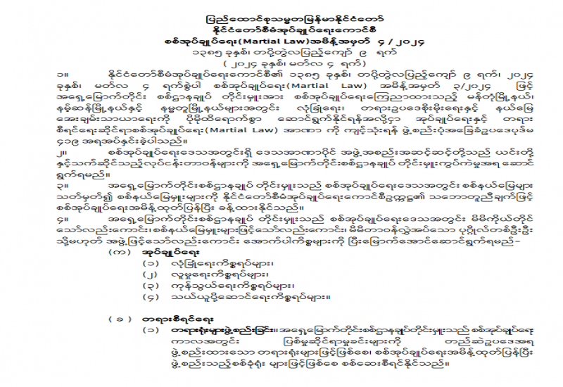 စစ်အုပ်ချုပ်ရေး(Martial Law)အမိန့်အမှတ် ၂ / ၂၀၂၄ ထုတ်ပြန်ကြေညာ