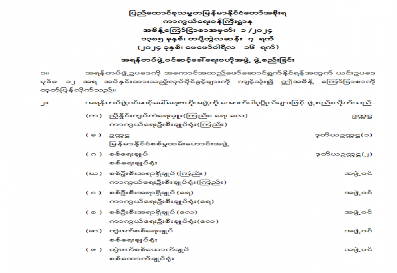 လူမှုရေးရာဝန်ကြီးများ အစားထိုးခန့်အပ်ခြင်း