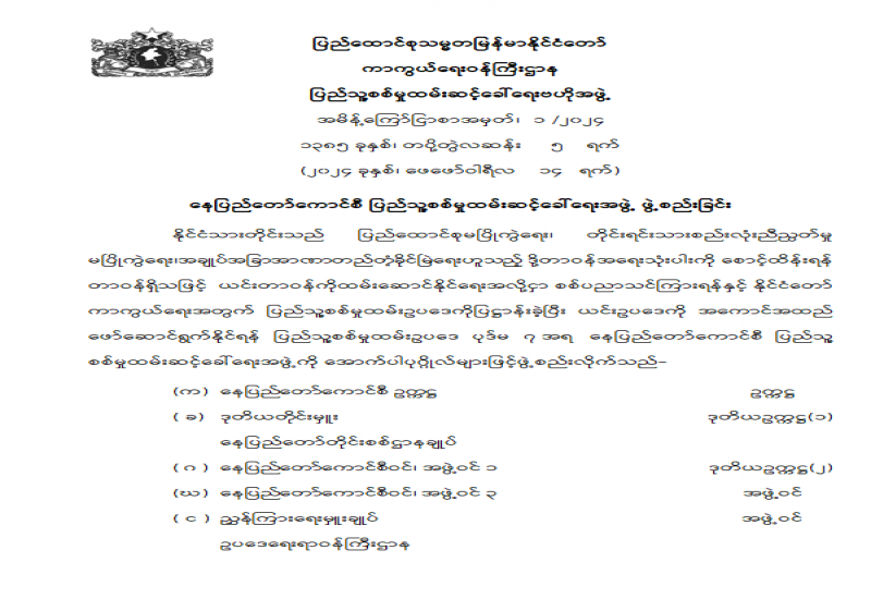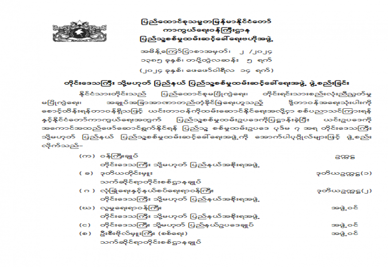 ဝန်ထမ်းအဖွဲ့အစည်းအကြီးအမှူး ခန့်ထားခြင်း