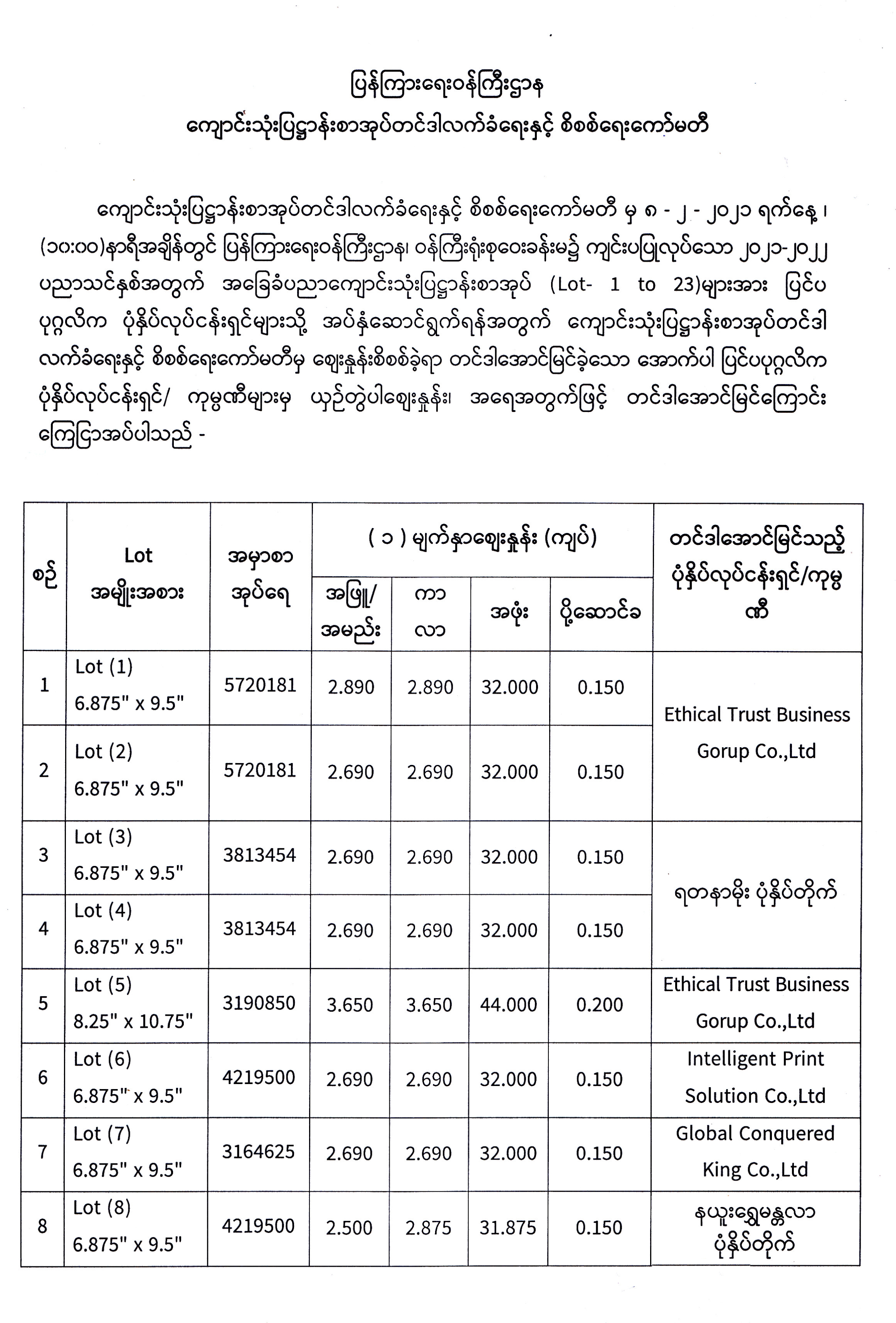 ပြန်ကြားရေးဝန်ကြီးဌာန ကျောင်းသုံးပြဋ္ဌာန်းစာအုပ်တင်ဒါလက်ခံရေးနှင့် စိစစ်ရေးကော်မတီ