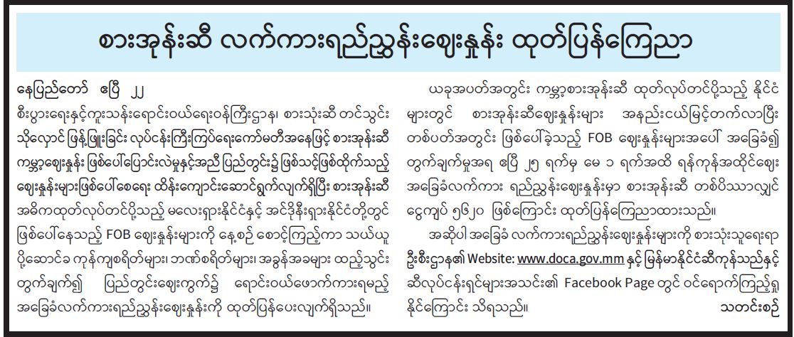 ဝန်ကြီးဌာန ကြေညာချက်များ