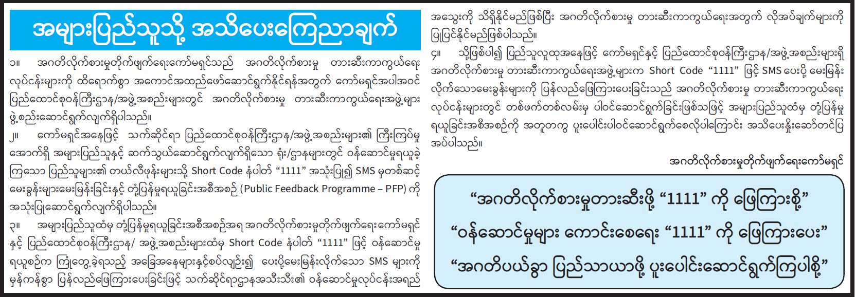 အများပြည်သူသို့ သတိပေးကြေညာချက်