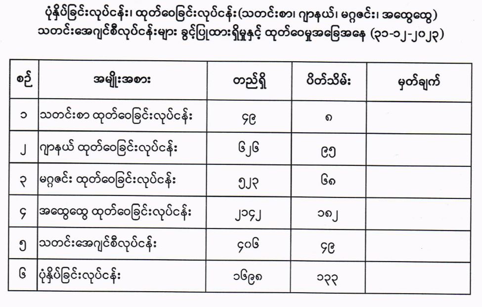 ပုံနှိပ်ခြင်းလုပ်ငန်း၊ ထုတ်ဝေခြင်းလုပ်ငန်း(သတင်းစာ၊ ဂျာနယ်၊ မဂ္ဂဇင်း၊ အထွေထွေ) သတင်းအေဂျင်စီလုပ်ငန်းများ ခွင့်ပြုထားရှိမှုနှင့် ထုတ်ဝေမှုအခြေအနေ(၃၁-၁၂-၂၀၂၃) 01/08/2024