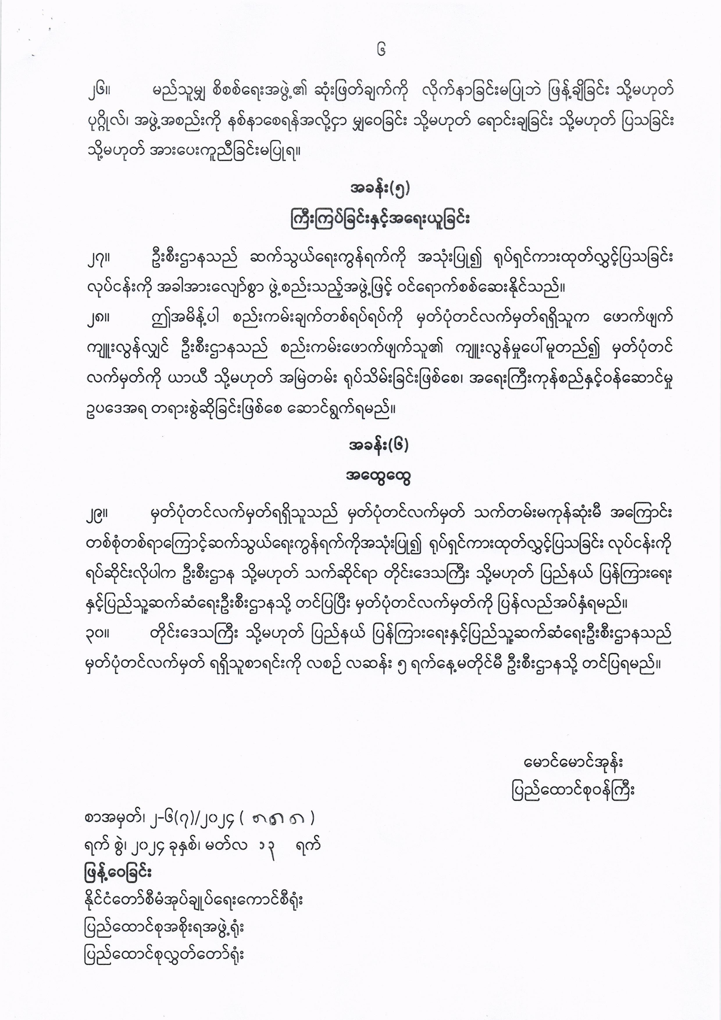 ဦးစီးဌာနနှင့် လုပ်ငန်းများ၏ ကြေညာချက်များ