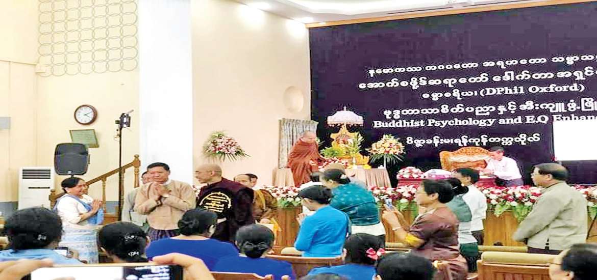 ၂၀၁၈ ခုနှစ် ဇွန်လမှာလည်း “Buddhist Psychology and EQ Enhancement” ခေါင်းစဉ်ဖြင့် Oxford ဆရာတော် အရှင်ဒေါက်တာဓမ္မသာမိက ဟောပြောခဲ့ပါတယ်။ ပညာတွေ အများကြီးရခဲ့ကြတဲ့ အပြင် တရားထိုင်ကြရပါတယ်။ ဆရာတော်ရဲ့ လမ်းညွှန် သင်ကြားပြသမှုအောက်မှာ ဟောပြောပေးတဲ့အတွက် ပညာများရတဲ့အပြင် ဝိပဿနာတရား အားထုတ်မှုပါ လုပ်ဆောင်ရတဲ့အတွက် ကုသိုလ်ပညာရခဲ့တဲ့နေ့လေး တစ်နေ့ဖြစ်ခဲ့ရပါတယ်။ ဆရာတော်ရဲ့ သီလဂုဏ်၊ သမာဓိ ဂုဏ်၊ ပညာဂုဏ်များကို အထူးအောက်မေ့သတိရလျက် ဦးတင်လိုက်ပါတယ်။