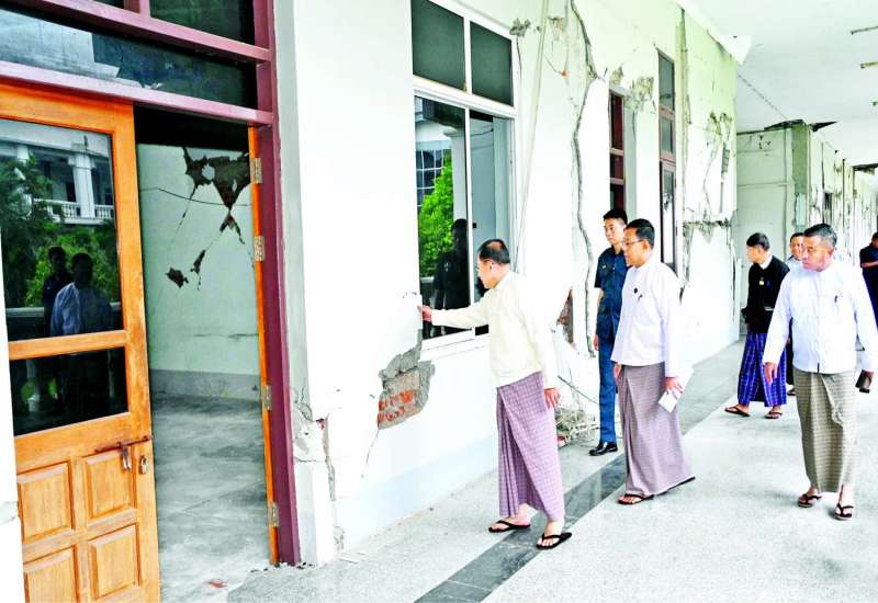 မန္တလေးငလျင်ကြီးကြောင့် ထိခိုက်ပျက်စီးမှုများဖြစ်ပေါ်ခဲ့သည့် ပြည်ထောင်စုတရားလွှတ်တော်ချုပ်ရုံးအဆောက်အဦနှင့် အလုပ်သမားဝန်ကြီးဌာန ရုံးအဆောက်အဦတို့အား နိုင်ငံတော်စီမံအုပ်ချုပ်ရေးကောင်စီဥက္ကဋ္ဌ နိုင်ငံတော်ဝန်ကြီးချုပ် ဗိုလ်ချုပ်မှူးကြီး မင်းအောင်လှိုင်သည် ကောင်စီတွဲဖက်အတွင်းရေးမှူး ဗိုလ်ချုပ်ကြီး ရဲဝင်းဦး၊ ပြည်ထောင်စုဝန်ကြီးများ၊ နေပြည်တော်ကောင်စီဥက္ကဋ္ဌနှင့် တာဝန်ရှိသူများ လိုက်ပါ၍ ယနေ့ညနေပိုင်းတွင် သွားရောက်ကြည့်ရှုစစ်ဆေးသည်။