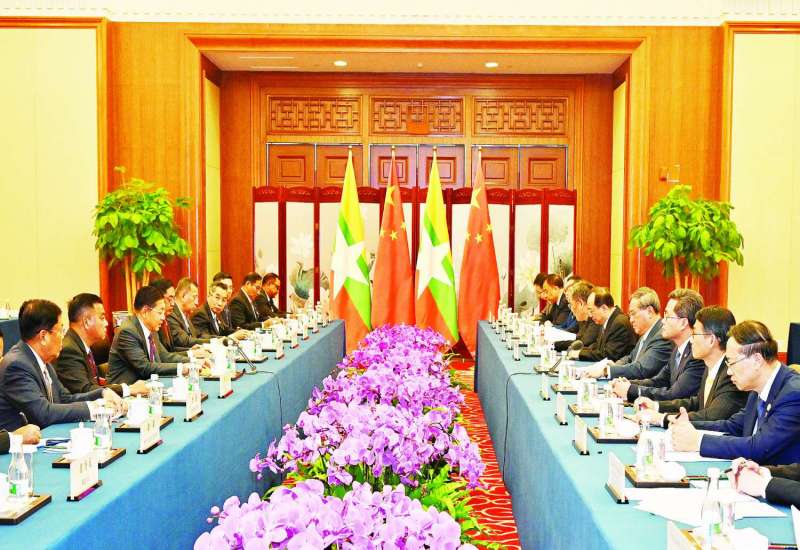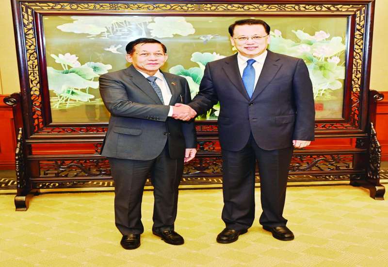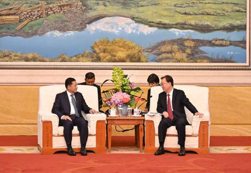 တရုတ်ပြည်သူ့သမ္မတနိုင်ငံအစိုးရ၏ ဖိတ်ကြားချက်အရ ထိပ်သီးအစည်းအဝေးများ တက်ရောက်ရန် တရုတ်ပြည်သူ့သမ္မတနိုင်ငံသို့ ရောက်ရှိနေသည့် နိုင်ငံတော်စီမံအုပ်ချုပ်ရေးကောင်စီဥက္ကဋ္ဌ နိုင်ငံတော်ဝန်ကြီးချုပ် ဗိုလ်ချုပ်မှူးကြီး မင်းအောင်လှိုင်သည် တရုတ်ပြည်သူ့သမ္မတနိုင်ငံဝန်ကြီးချုပ် H.E. Mr. Li Qiang အဖွဲ့အား ယနေ့မွန်းလွဲပိုင်းတွင် တရုတ်ပြည်သူ့သမ္မတနိုင်ငံ ကူမင်းမြို့ရှိ Haigeng Garden Hotel ၌ တွေ့ဆုံသည်။