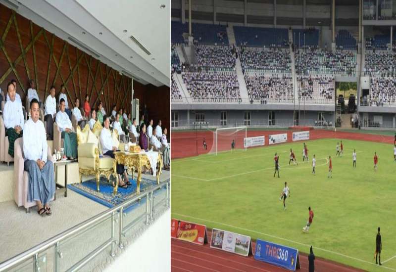 ၂၀၂၄ ခုနှစ်၊ ဝန်ကြီးဌာနပေါင်းစုံ တက္ကသိုလ်များဘောလုံးပြိုင်ပွဲ ဗိုလ်လုပွဲနှင့် ဆုချီးမြှင့်ခြင်းအခမ်းအနားကို ယနေ့မွန်းလွဲပိုင်းတွင် နေပြည်တော်ရှိ ဝဏ္ဏသိဒ္ဓိအားကစားကွင်း၌ ကျင်းပပြုလုပ်ရာ နိုင်ငံတော်စီမံအုပ်ချုပ်ရေးကောင်စီဥက္ကဋ္ဌ နိုင်ငံတော်ဝန်ကြီးချုပ် ဗိုလ်ချုပ်မှူးကြီး မင်းအောင်လှိုင် တက်ရောက်ကြည့်ရှုအားပေးပြီး ဆုများ ပေးအပ်ချီးမြှင့်သည်။