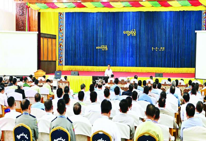 နိုင်ငံတော်စီမံအုပ်ချုပ်ရေးကောင်စီဥက္ကဋ္ဌ နိုင်ငံတော်ဝန်ကြီးချုပ် ဗိုလ်ချုပ်မှူးကြီး မင်းအောင်လှိုင်သည် ယနေ့နံနက်ပိုင်းတွင် ရှမ်းပြည်နယ်အစိုးရအဖွဲ့ဝင်များ၊ ပြည်နယ်နှင့် ခရိုင်အဆင့် ဌာနဆိုင်ရာတာဝန်ရှိသူများအား တောင်ကြီးမြို့၊ မြို့တော်ခန်းမ၌ တွေ့ဆုံအမှာစကားပြောကြားသည်။