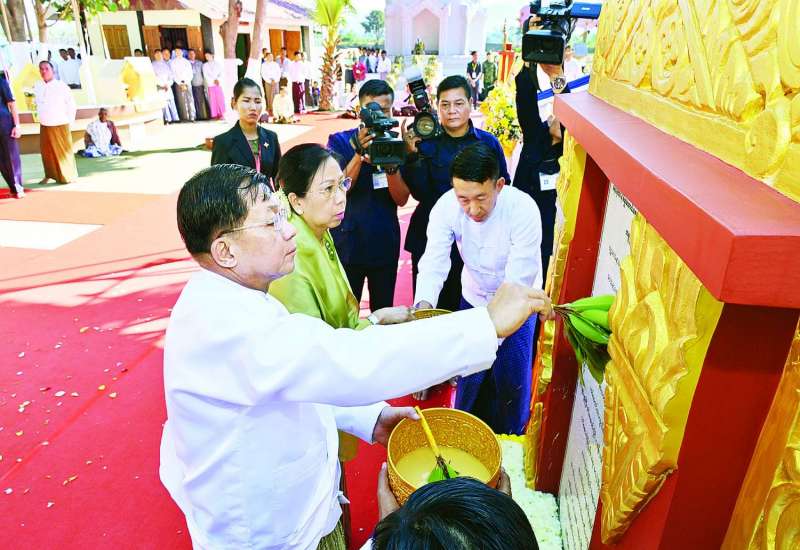 နေပြည်တော် ပျဉ်းမနားမြို့ ပါဠိတက္ကသိုလ် မင်္ဂလာဇေယျုံကျောင်းတိုက် ဝတ္ထုကံတော်အတွင်းရှိ မြို့တော်ထိပ်ပန်မင်္ဂလာစေတီတော် အထက်ဌာပနာတော်သွင်း၊ ရွှေထီးတော်တင်နှင့် ဗုဒ္ဓါဘိသေက အနေကဇာတင်မဟာမင်္ဂလာအခမ်းအနားကို ယနေ့နံနက်ပိုင်းတွင် ကျင်းပပြုလုပ်ရာ တိုင်းဩဝါဒါစရိယ၊ ပုဗ္ဗသီရိမြို့နယ် ဝဲကြီးစာသင်တိုက်ဆရာတော် အဘိဓဇမဟာရဋ္ဌဂုရု ဘဒ္ဒန္တအာဒိစ္စဝံသနှင့် ပါဠိတက္ကသိုလ် မင်္ဂလာဇေယျုံကျောင်းတိုက် ပဓာနနာယက အဂ္ဂမဟာပဏ္ဍိတ အဂ္ဂမဟာသဒ္ဓမ္မဇောတိကဓဇ ဘဒ္ဒန္တဝိမလဗုဒ္ဓိ အမှူးပြုသည့် ဆရာတော်၊ သံဃာတော် အရှင်သူမြတ်များ ကြွရောက်ချီးမြှင့်တော်မူကြသည်။