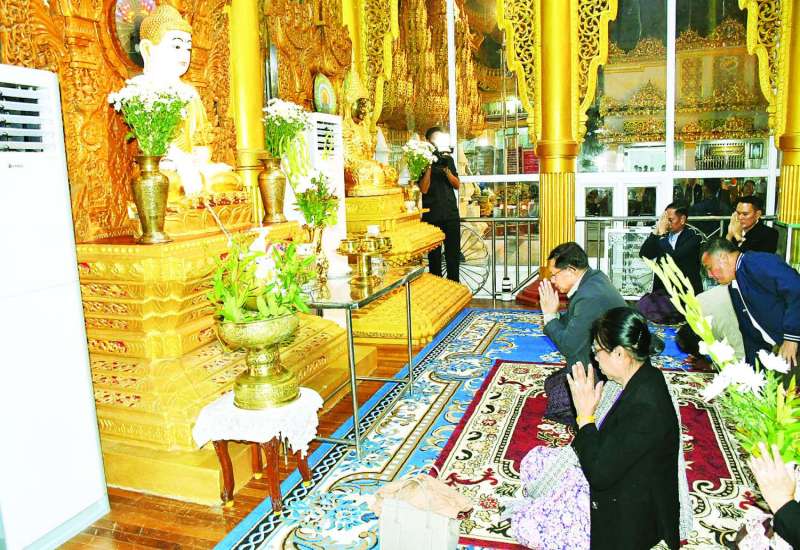 ပြည်ထောင်စုသမ္မတ မြန်မာနိုင်ငံတော်ယာယီသမ္မတ နိုင်ငံတော်လုံခြုံရေးနှင့် အေးချမ်းသာယာရေးကော်မရှင်ဥက္ကဋ္ဌ ဗိုလ်ချုပ်မှူးကြီး မင်းအောင်လှိုင်သည် ခရီးစဉ်တွင် လိုက်ပါလာသည့် အဖွဲ့ဝင်များနှင့်အတူ ယနေ့ညနေပိုင်းတွင် ပဲခူးတိုင်းဒေသကြီး ပြည်မြို့ ကျက်သရေဆောင်လေးဆူ ဓာတ်ပျော်ရွှေဆံတော်စေတီတော်မြတ်ကြီးအား သွားရောက်ဖူးမြော်ကြည်ညိုသည်။