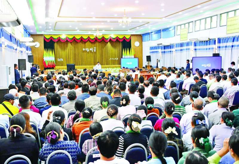 ပြည်ထောင်စုသမ္မတမြန်မာနိုင်ငံတော် ယာယီသမ္မတ နိုင်ငံတော်လုံခြုံရေးနှင့်အေးချမ်းသာယာရေးကော်မရှင်ဥက္ကဋ္ဌ ဗိုလ်ချုပ်မှူးကြီးမင်းအောင်လှိုင်သည် ပဲခူးတိုင်းဒေသကြီး၊ ပြည်ခရိုင်အတွင်းရှိရှိ ဌာနဆိုင်ရာတာဝန်ရှိသူများ၊ ရပ်မိရပ်ဖများ၊ အသေးစား၊ အငယ်စားနှင့်အလတ်စား (MSME) စီးပွားရေးလုပ်ငန်းရှင်များနှင့် ယနေ့နံနက်ပိုင်းတွင် ပြည်မြို့၊ သီရိခေတ္တရာရတနာမြို့တော်ခန်းမ၌တွေ့ဆုံ၍ ဒေသဖွံ့ဖြိုးတိုးတက်ရေး ဆွေးနွေးပြောကြားသည်။