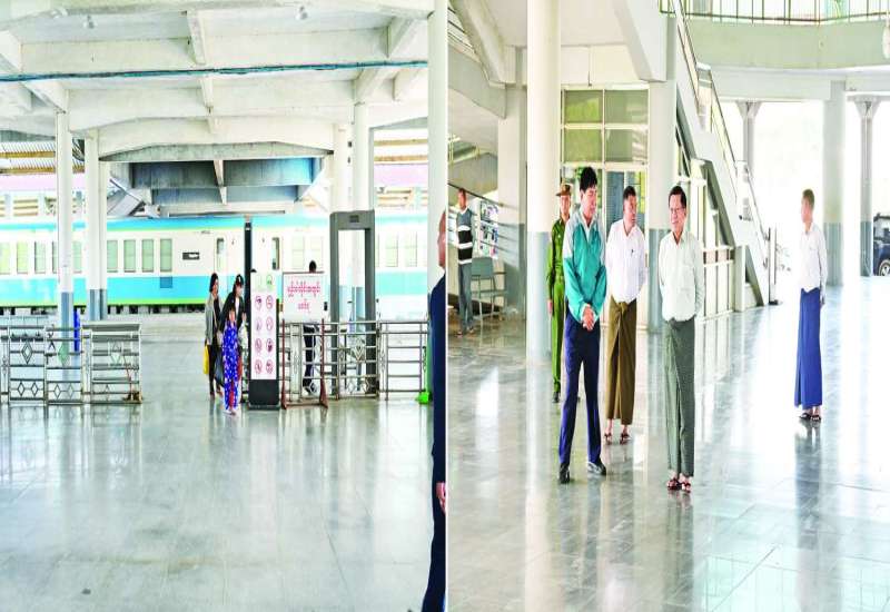ပြည်ထောင်စုသမ္မတမြန်မာနိုင်ငံတော် နိုင်ငံတော်ယာယီသမ္မတ နိုင်ငံတော်လုံခြုံရေးနှင့် အေးချမ်းသာယာရေးကော်မရှင်ဥက္ကဋ္ဌ ဗိုလ်ချုပ်မှူးကြီး မင်းအောင်လှိုင်သည် ယနေ့ နံနက်ပိုင်းတွင် ကော်မရှင်အတွင်းရေးမှူး ဗိုလ်ချုပ်ကြီး ရဲဝင်းဦးနှင့် တာဝန်ရှိသူများ လိုက်ပါ၍ နေပြည်တော်ဘူတာကြီးသို့ သွားရောက်ကြည့်ရှုစစ်ဆေးသည်။