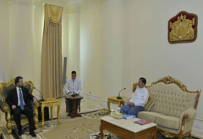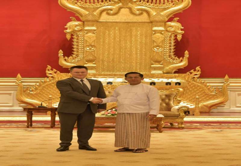 နိုင်ငံတော်စီမံအုပ်ချုပ်ရေးကောင်စီဥက္ကဋ္ဌ နိုင်ငံတော်ဝန်ကြီးချုပ် ဗိုလ်ချုပ်မှူးကြီးမင်းအောင်လှိုင်ထံ ရုရှားဖက်ဒေရေးရှင်းနိုင်ငံ၊ ရော့စ်ကွန်ဂရက်ရင်းနှီးမြှုပ်နှံမှု ရန်ပုံငွေအဖွဲ့မှ ညွှန်ကြားရေးမှူး SHATIROV Alexander Sergeevich ဦးဆောင်သည့် ကိုယ်စားလှယ်အဖွဲ့က ယနေ့မွန်းလွဲပိုင်းတွင် နေပြည်တော်ရှိ နိုင်ငံတော်စီမံအုပ်ချုပ်ရေးကောင်စီဥက္ကဋ္ဌရုံး ဧည့်ခန်းမ၌ လာရောက်ဂါရဝပြု တွေ့ဆုံသည်။
