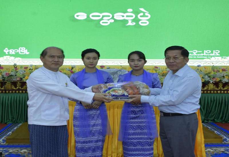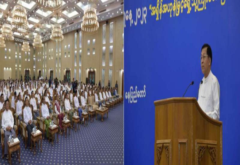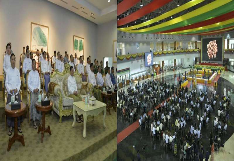 နိုင်ငံတော်စီမံအုပ်ချုပ်ရေးကောင်စီဥက္ကဋ္ဌ တပ်မတော်ကာကွယ်ရေးဦးစီးချုပ် ဗိုလ်ချုပ်မှူးကြီး သတိုးမဟာသရေစည်သူ သတိုးသီရိသုဓမ္မ မင်းအောင်လှိုင် တက်ရောက်မိန့်ခွန်းပြောကြား