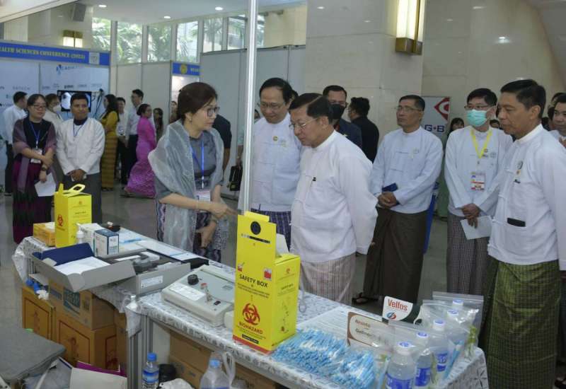 မြန်မာနိုင်ငံကျန်းမာရေးပညာရပ်ဆိုင်ရာ နှီးနှောဖလှယ်ပွဲ (၂၀၂၃) ဖွင့်ပွဲ အခမ်းအနားကို ယနေ့နံနက် ၈ နာရီခွဲတွင် နေပြည်တော်ရှိ မြန်မာအပြည်ပြည်ဆိုင်ရာ ကွန်ဗင်းရှင်းဗဟိုဌာန (MICC-II)၌ ကျင်းပရာ နိုင်ငံတော်စီမံအုပ်ချုပ်ရေးကောင်စီဥက္ကဋ္ဌ နိုင်ငံတော်ဝန်ကြီးချုပ် ဗိုလ်ချုပ်မှူးကြီး မင်းအောင်လှိုင် တက်ရောက်ဖွင့်လှစ်ပေးပြီး အမှာစကားပြောကြားသည်။