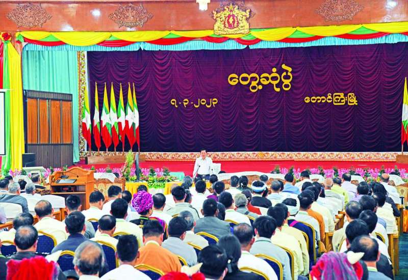 နိုင်ငံတော်စီမံအုပ်ချုပ်ရေးကောင်စီဥက္ကဋ္ဌ နိုင်ငံတော်ဝန်ကြီးချုပ် ဗိုလ်ချုပ်မှူးကြီး မင်းအောင်လှိုင်သည် ယနေ့မွန်းလွဲပိုင်းတွင် ရှမ်းပြည်နယ်အတွင်းရှိ အသေးစား၊ အငယ်စားနှင့် အလတ်စားစီးပွားရေး(MSME) လုပ်ငန်းရှင်များအား တောင်ကြီးမြို့၊ မြို့တော်ခန်းမ၌ တွေ့ဆုံ၍ ဒေသဖွံ့ဖြိုးတိုးတက်ရေးဆိုင်ရာများနှင့် စီးပွားရေးလုပ်ငန်းဖွံ့ဖြိုးတိုးတက်ရေးဆိုင်ရာများကို ဆွေးနွေးပြောကြားသည်။