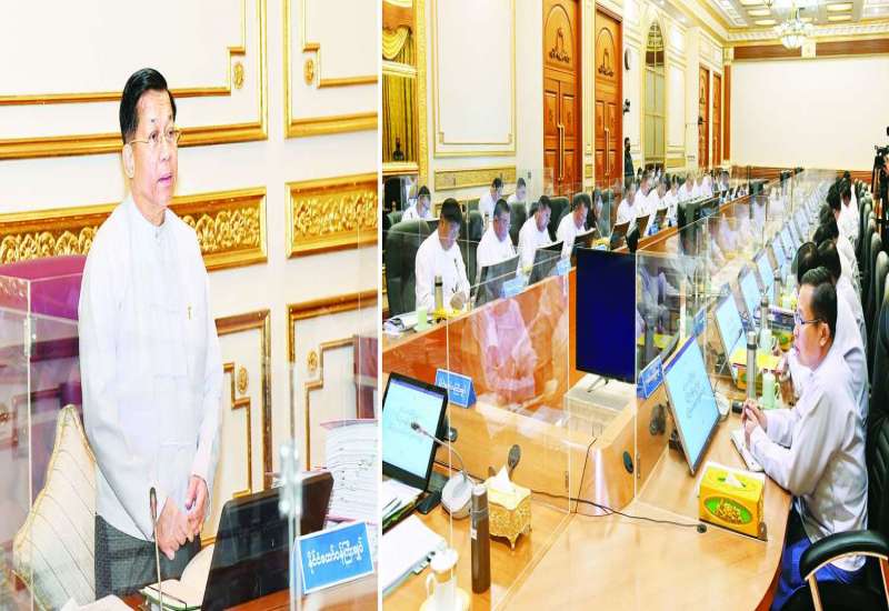 ပြည်ထောင်စုအစိုးရအဖွဲ့အစည်းအဝေး အမှတ်စဉ်(၁/၂၀၂၃)ကို ယနေ့နံနက်ပိုင်းတွင် နေပြည်တော်ရှိ နိုင်ငံတော်စီမံအုပ်ချုပ်ရေးကောင်စီဥက္ကဋ္ဌရုံး အစည်းအဝေးခန်းမ၌ကျင်းပရာ နိုင်ငံတော်စီမံအုပ်ချုပ်ရေးကောင်စီဥက္ကဋ္ဌ နိုင်ငံတော်ဝန်ကြီးချုပ် ဗိုလ်ချုပ်မှူးကြီးမင်းအောင်လှိုင် တက်ရောက်အမှာစကားပြောကြားသည်။