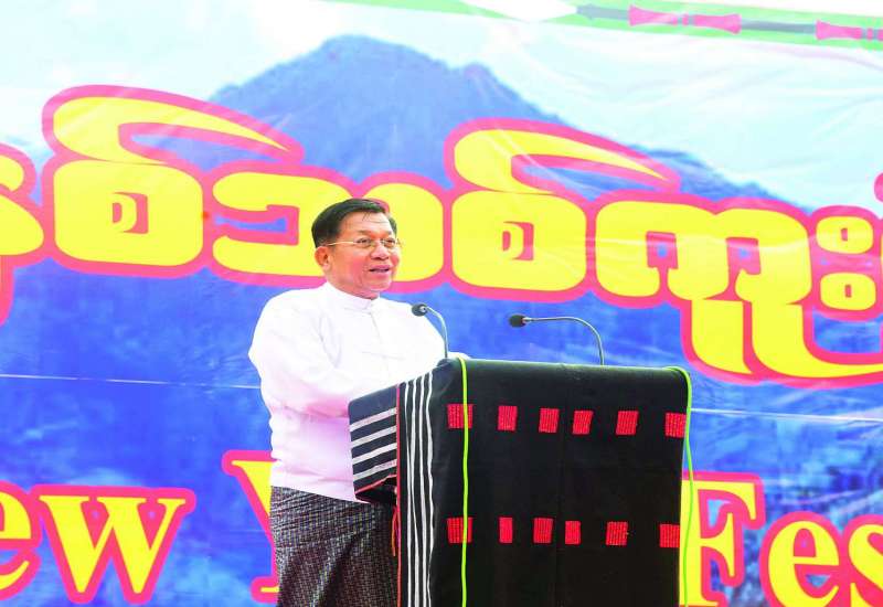 နာဂရိုးရာနှစ်သစ်ကူးပွဲတော်အခမ်းအနားကို ယနေ့မွန်းလွဲပိုင်းတွင် နာဂကိုယ်ပိုင် အုပ်ချုပ်ခွင့်ရဒေသ၊ လဟယ်မြို့၌ ကျင်းပပြုလုပ်ရာ နိုင်ငံတော်စီမံအုပ်ချုပ်ရေးကောင်စီဥက္ကဋ္ဌ နိုင်ငံတော်ဝန်ကြီးချုပ် ဗိုလ်ချုပ်မှူးကြီး မင်းအောင်လှိုင် တက်ရောက်ချီးမြှင့်သည်။