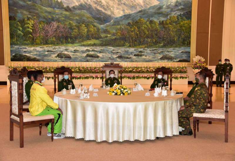 နိုင်ငံတော်စီမံအုပ်ချုပ်ရေးကောင်စီဥက္ကဋ္ဌ တပ်မတော်ကာကွယ်ရေးဦးစီးချုပ် ဗိုလ်ချုပ်မှူးကြီး မင်းအောင်လှိုင်သည် မွန်ပြည်သစ်ပါတီ (NMSP) ဒုတိယဥက္ကဋ္ဌ နိုင်အောင်မင်း ဦးဆောင်သည့် ငြိမ်းချမ်းရေးကိုယ်စားလှယ်အဖွဲ့အား ယနေ့ မွန်းလွဲပိုင်းတွင် နေပြည်တော်ရှိ ဘုရင့်နောင်ရိပ်သာ ဧည့်ခန်းမဆောင်၌ တွေ့ဆုံ၍ ငြိမ်းချမ်းရေးဆိုင်ရာကိစ္စရပ်များ ဆွေးနွေးသည်။