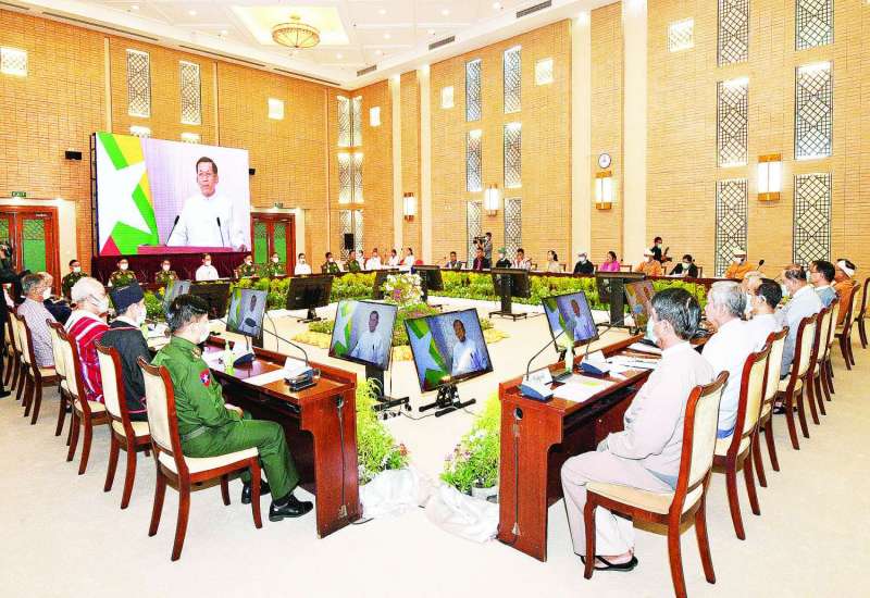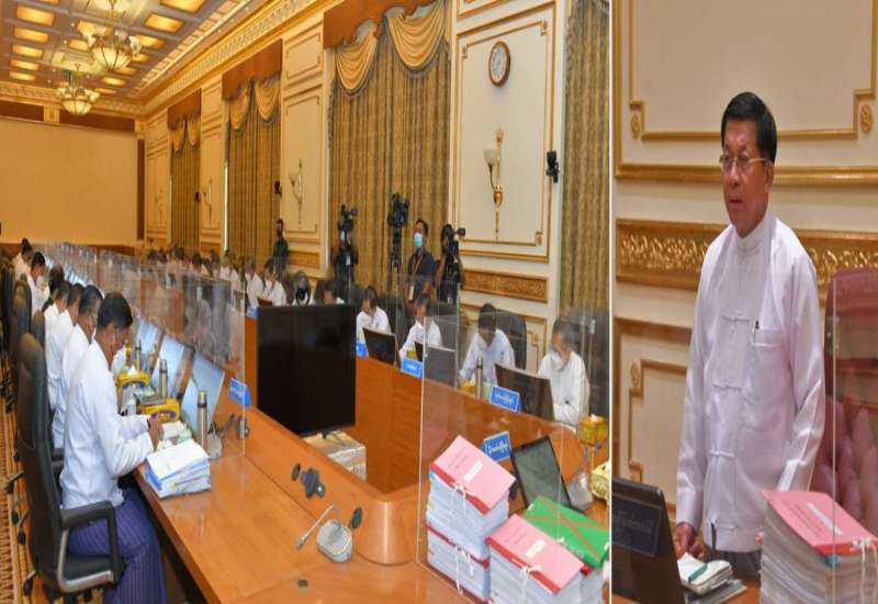 နေပြည်တော် အောက်တိုဘာ ၇ ပြည်ထောင်စုအစိုးရအဖွဲ့အစည်းအဝေး အမှတ်စဉ် (၇/၂၀၂၂)ကို ယနေ့မွန်းလွဲ ပိုင်းတွင် နေပြည်တော်ရှိ နိုင်ငံတော်စီမံအုပ်ချုပ်ရေးကောင်စီ ဥက္ကဋ္ဌရုံး အစည်းအဝေးခန်းမ၌ ကျင်းပရာ နိုင်ငံတော်စီမံအုပ်ချုပ်ရေးကောင်စီဥက္ကဋ္ဌ နိုင်ငံတော်ဝန်ကြီးချုပ် ဗိုလ်ချုပ်မှူးကြီး မင်းအောင်လှိုင် တက်ရောက်အမှာစကားပြောကြားသည်။