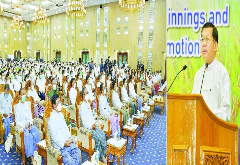 မြန်မာနိုင်ငံ၏ ဆန်စပါးကဏ္ဍဖွံ့ဖြိုးတိုးတက်ရေးအတွက် ဆက်လက်ဆောင်ရွက်သင့်သည့်လုပ်ငန်းစဉ်များ၊ ကြုံတွေ့ရသည့်အခက်အခဲများနှင့် ဆန်စပါးကဏ္ဍ၏ အနာဂတ်ဦးတည်လားရာများကို လေ့လာသုံးသပ်ပြီး အမျိုးသားပို့ကုန်မဟာဗျူဟာနှင့်အညီ ဆန်စပါး စိုက်ပျိုး၊ ထုတ်လုပ်၊ ကြိတ်ခွဲ၊ သိုလှောင်၊ တင်ပို့ရောင်းချခြင်း တန်ဖိုးကွင်းဆက်တစ်လျှောက် ဆောင်ရွက်ရမည့်လုပ်ငန်းများ၊ ပြုပြင်ပြောင်းလဲတပ်ဆင်ရမည့် အစီအစဉ်များ၊ အစိုးရနှင့် ပုဂ္ဂလိကကဏ္ဍများမှ ဆောင်ရွက်ရမည့် လုပ်ငန်းအစီအစဉ်များကို ဆွေးနွေးဖော်ထုတ်ရန် ရည်ရွယ်၍ “နိုင်ငံ့စီပွားမြှင့်တင်ဖို့၊ ဆန်စပါးဖြင့်ကြိုးပမ်းစို့” ဟူသည့် ခေါင်းစဉ်ဖြင့် ကျင်းပပြုလုပ်သည့် မြန်မာ့ဆန်စပါးညီလာခံ -၂၀၂၂ (Myanmar Rice Conference – 2022) ဖွင့်ပွဲအခမ်းအနားကို ယနေ့နံနက်ပိုင်းတွင် နေပြည်တော်ရှိ မြန်မာအပြည်ပြည်ဆိုင်ရာ ကွန်ဗင်းရှင်း (ဗဟိုဌာန-၂)၌ ကျင်းပပြုလုပ်ရာ နိုင်ငံတော်စီမံအုပ်ချုပ်ရေးကောင်စီဥက္ကဋ္ဌ နိုင်ငံတော်ဝန်ကြီးချုပ် ဗိုလ်ချုပ်မှူးကြီးမင်းအောင်လှိုင် တက်ရောက်အမှာစကား ပြောကြားသည်။