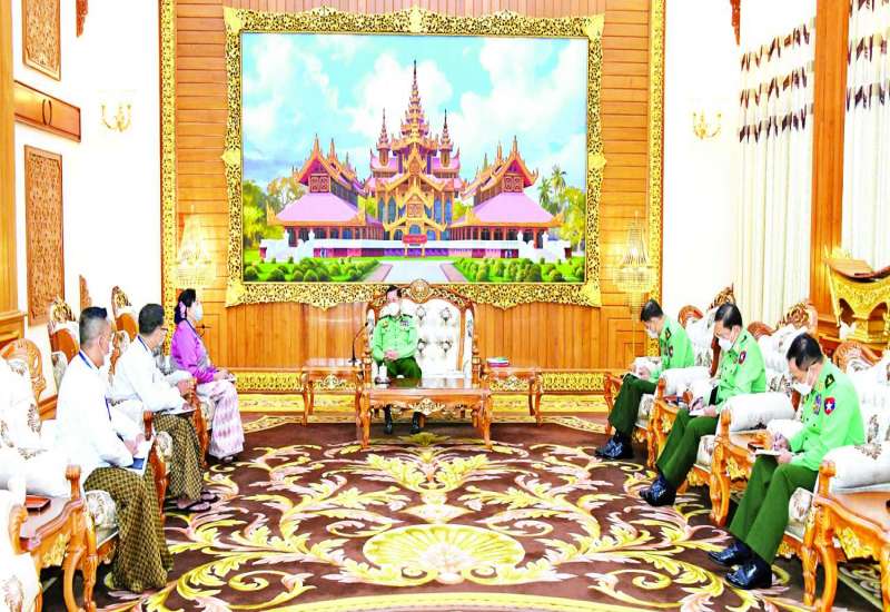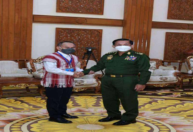 နိုင်ငံတော်စီမံအုပ်ချုပ်ရေးကောင်စီဥက္ကဋ္ဌ တပ်မတော်ကာကွယ်ရေးဦးစီးချုပ် ဗိုလ်ချုပ်မှူးကြီး မင်းအောင်လှိုင်သည် ရခိုင်ပြည်လွတ်မြောက်ရေးပါတီ ALP ဒုတိယဥက္ကဋ္ဌ ဒေါ်စောမြရာဇာလင်း ဦးဆောင်သည့် ငြိမ်းချမ်းရေးကိုယ်စားလှယ်အဖွဲ့အား ယနေ့နံနက်ပိုင်းတွင် နေပြည်တော်ရှိ ဘုရင့်နောင်ရိပ်သာ ဧည့်ခန်းမဆောင်၌တွေ့ဆုံ၍ ငြိမ်းချမ်းရေးဆိုင်ရာကိစ္စရပ်များ ဆွေးနွေးသည်။