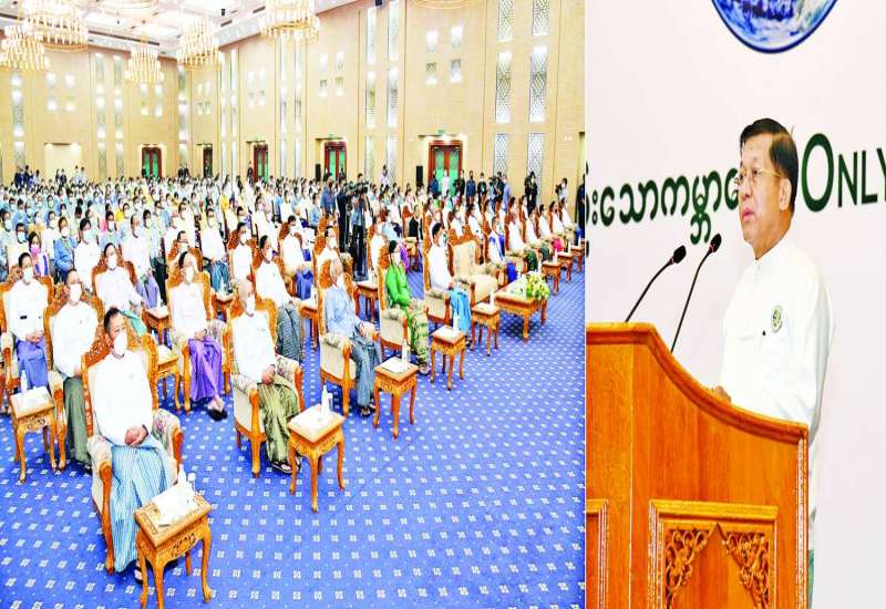 နိုင်ငံတော်စီမံအုပ်ချုပ်ရေးကောင်စီ အစည်းအဝေး (၅/၂၀၂၂)ကို ယနေ့ မွန်းလွဲပိုင်းတွင် နေပြည်တော်ရှိ နိုင်ငံတော်စီမံအုပ်ချုပ်ရေးကောင်စီ ဥက္ကဋ္ဌရုံး အစည်းအဝေးခန်းမ၌ ကျင်းပရာ နိုင်ငံတော်စီမံအုပ်ချုပ်ရေးကောင်စီ ဥက္ကဋ္ဌ၊ နိုင်ငံတော်ဝန်ကြီးချုပ် ဗိုလ်ချုပ်မှူးကြီး မင်းအောင်လှိုင် တက်ရောက် အမှာစကား ပြောကြားသည်။