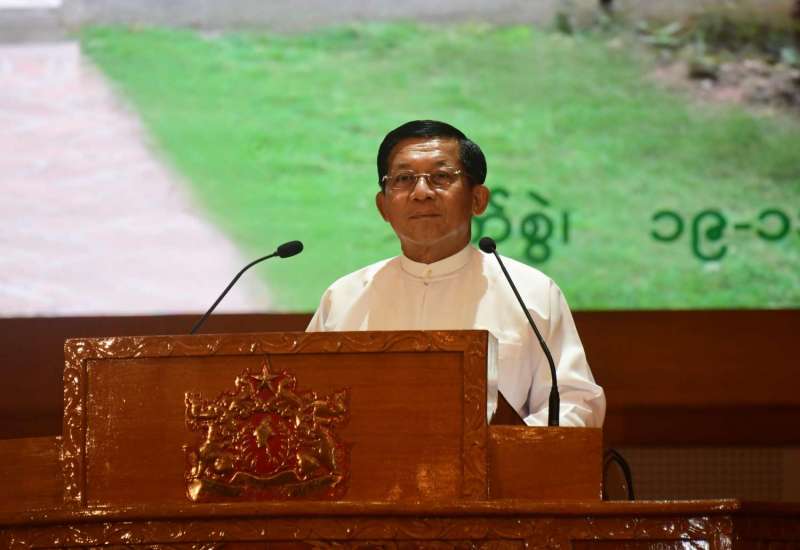 နိုင်ငံတော်စီမံအုပ်ချုပ်ရေးကောင်စီအစည်းအဝေး (၁၇/၂၀၂၁)ကို ယနေ့မွန်းလွဲပိုင်းတွင် နေပြည်တော်ရှိ နိုင်ငံတော်စီမံအုပ်ချုပ်ရေးကောင်စီဥက္ကဋ္ဌရုံး အစည်းအဝေးခန်းမ၌ ကျင်းပရာ နိုင်ငံတော်စီမံအုပ်ချုပ်ရေးကောင်စီဥက္ကဋ္ဌ၊ နိုင်ငံတော်ဝန်ကြီးချုပ် ဗိုလ်ချုပ်မှူးကြီး မင်းအောင်လှိုင် တက်ရောက်အမှာစကားပြောကြားသည်။