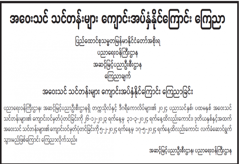 ပြန်ကြားရေးဝန်ကြီးဌာနအနေဖြင့် ပုံနှိပ်ခြင်းနှင့်ထုတ်ဝေခြင်းလုပ်ငန်းနည်းဥပဒေ ထွက်ရှိသည့် ၁၀-၁၀-၂၀၁၄ ရက်နေ့မှစ၍ ပုံနှိပ်ခြင်း၊ ထုတ်ဝေခြင်းနှင့် သတင်းအေဂျင်စီလုပ်ငန်း အသိအမှတ်ပြုလက်မှတ်များအား ၅ နှစ်သက်တမ်း ခွင့်ပြုပေးခဲ့ပါသည်။