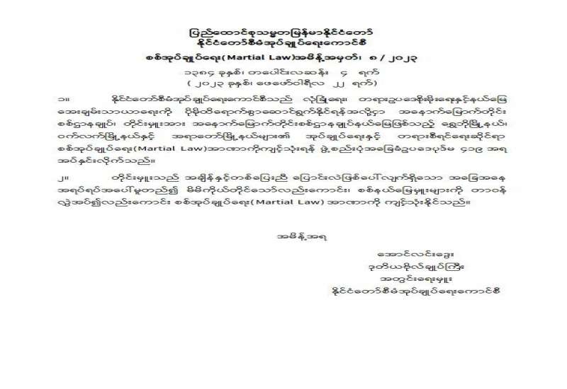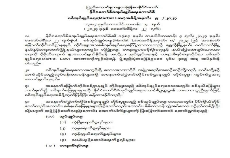 ပြည်ထောင်စုသမ္မတမြန်မာနိုင်ငံတော် နိုင်ငံတော်စီမံအုပ်ချုပ်ရေးကောင်စီ အမိန့်ကြော်ငြာစာအမှတ် ၇၇ / ၂၀၂၃ ၁၃၈၄ ခုနှစ်၊ တပေါင်းလဆန်း ၁၂ ရက် ( ၂၀၂၃ ခုနှစ် ၊ မတ်လ ၂ ရက် )