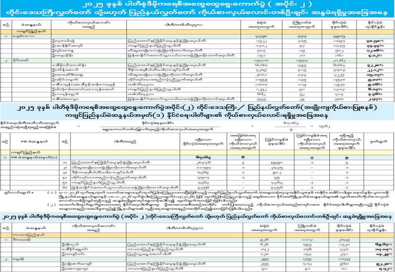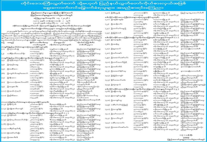 တိုင်းဒေသကြီးလွှတ်တော် သို့မဟုတ် ပြည်နယ်လွှတ်တော်ကိုယ်စားလှယ်အဖြစ် ရွေးကောက်တင်မြှောက်ခံရသူများ အမည်စာရင်းကြေညာ