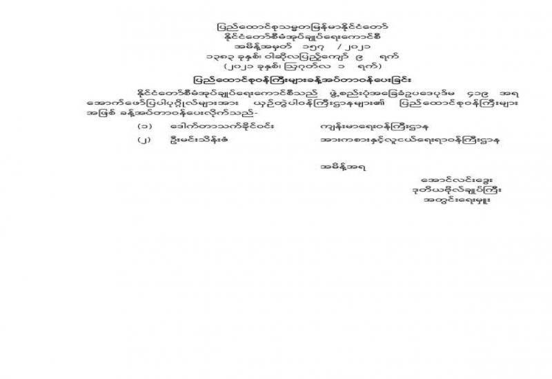 တိုင်းဒေသကြီး သို့မဟုတ် ပြည်နယ်စီးပွားရေးရာဝန်ကြီးများ ခန့်အပ်တာဝန်ပေးခြင်း