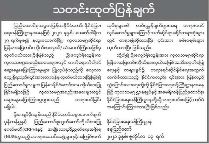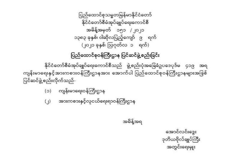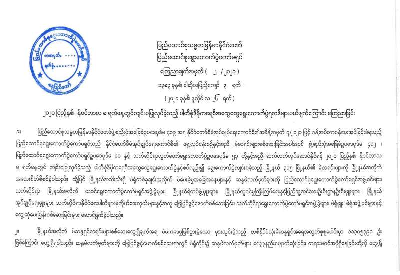 ၂၀၂၀ ပြည့်နှစ်၊ နိုဝင်ဘာလ ၈ ရက်နေ့တွင် ကျင်းပပြုလုပ်ခဲ့သည့် ပါတီစုံဒီမိုကရေစီအထွေထွေရွေးကောက်ပွဲရလဒ်များပယ်ဖျက်ကြောင်း ကြေညာခြင်း