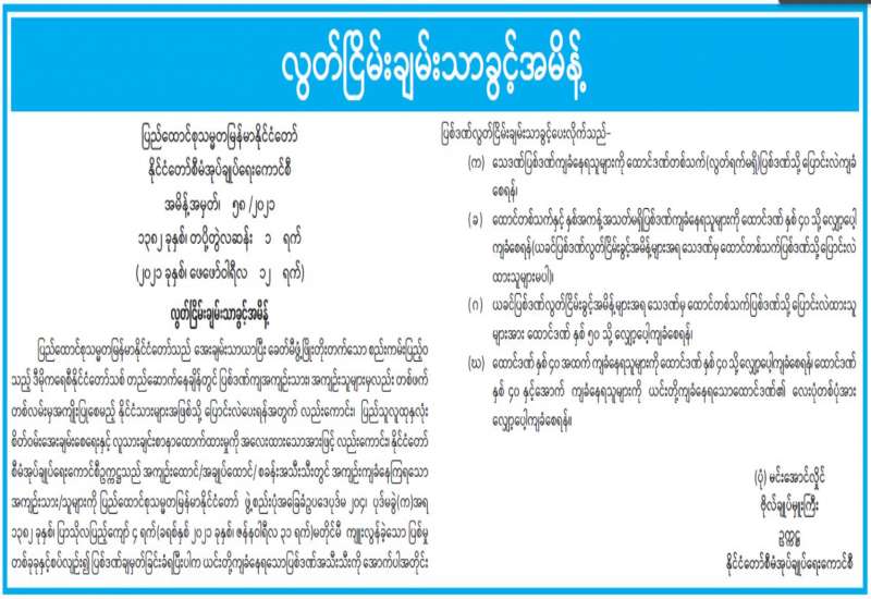 ၁။ ပြည်ထောင်စုရွေးကောက်ပွဲကော်မရှင်သည် ၂၀၂၀ ပြည့်နှစ်၊ နိုဝင်ဘာလ ၈ ရက်နေ့တွင် ကျင်းပပြုလုပ်ခဲ့သည့် အထွေထွေရွေးကောက်ပွဲနှင့်စပ်လျဉ်း၍ ပြန်လည်စိစစ်လျက်ရှိပါသည်။ ပြည်ထောင်စုသမ္မတမြန်မာနိုင်ငံတော် ဖွဲ့စည်းပုံအခြေခံ ဥပဒေပုဒ်မ (၂၀၀၈ ခုနှစ်) ပုဒ်မ ၃၈ (က) အရ နိုင်ငံသားတိုင်းသည် ဥပဒေနှင့်အညီ ရွေးကောက်တင်မြှောက်ခွင့်နှင့် ရွေးကောက် တင်မြှောက်ခံပိုင်ခွင့်ရှိသည်။ သက်ဆိုင်ရာ လွှတ်တော်ရွေးကောက်ပွဲဥပဒေ အခန်း (၄) ပုဒ်မ ၆ အရ အောက်ပါ အရည်အချင်း နှင့်ပြည့်စုံသူများသည် အမျိုးသား၊ အမျိုးသမီးမရွေး၊ ဘာသာ မရွေး ရွေးကောက်ပွဲတွင် ဆန္ဒမဲပေးပိုင်ခွင့်ရှိသည်-