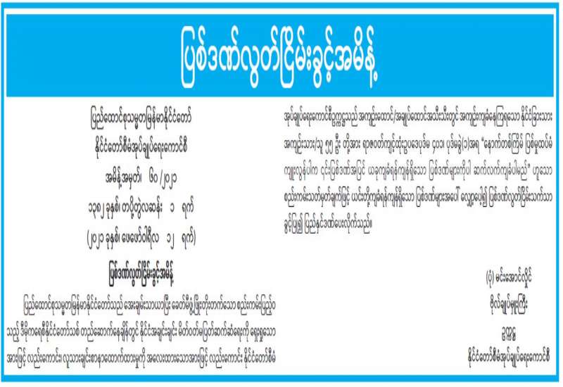 ၁။ပြည်ထောင်စု ရွေးကောက်ပွဲကော်မရှင်သည် တတိယအကြိမ်လွှတ်တော် သက်တမ်းအတွက် ပါတီစုံဒီမိုကရေစီ အထွေထွေ ရွေးကောက်ပွဲများကို ၂၀၂၀ ပြည့်နှစ်၊ နိုဝင်ဘာလ ၈ ရက်နေ့တွင် ကျင်းပပြုလုပ်ခဲ့ပါသည်။