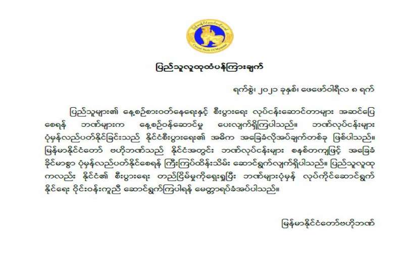ပြည်သူများ၏ နေ့စဉ်စားဝတ်နေရေးနှင့် စီးပွားရေး လုပ်ငန်းဆောင်တာများ အဆင်ပြေ စေရန် ဘဏ်များက နေ့စဉ်ဝန်ဆောင်မှု ပေးလျက်ရှိကြပါသည်။