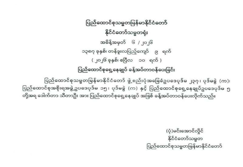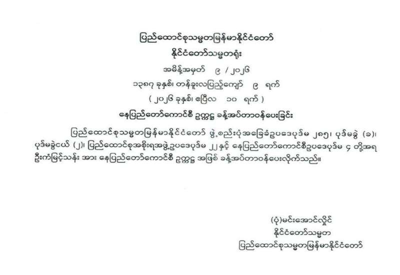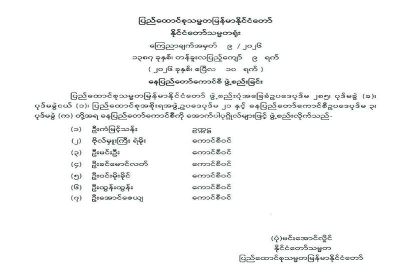 နေပြည်တော်ကောင်စီဥက္ကဋ္ဌ ခန့်အပ်တာဝန်ပေးခြင်း