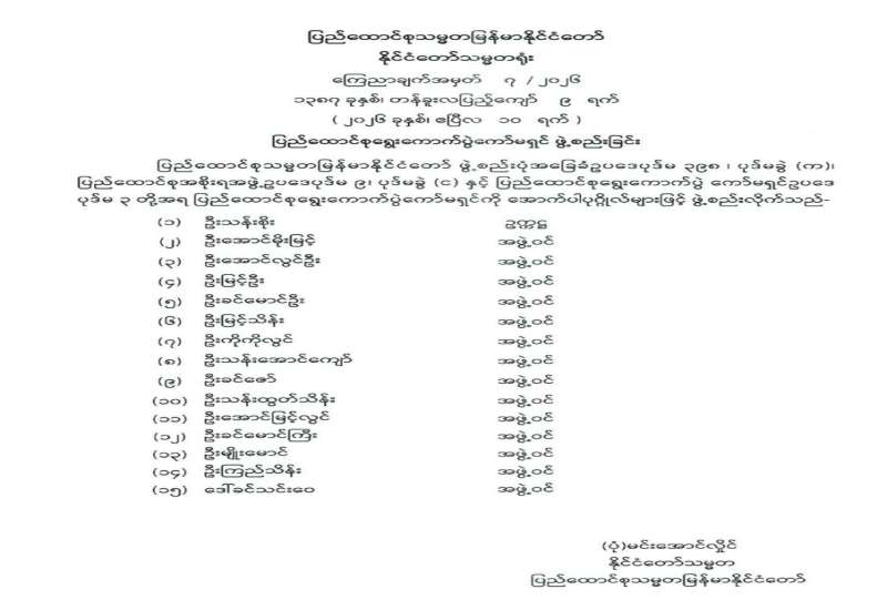 မြန်မာနိုင်ငံတော်ဗဟိုဘဏ်ဥက္ကဋ္ဌနှင့် ဒုတိယဥက္ကဋ္ဌများ ခန့်အပ်တာဝန်ပေးခြင်း