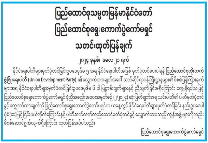 နိုင်ငံတော်စီမံအုပ်ချုပ်ရေးကောင်စီသည် နိုင်ငံခြားရေးဝန်ကြီးဌာန၊ ပြည်ထောင်စုဝန်ကြီးရုံးမှ ဦးအောင်ကျော်မိုးအား အမြဲတမ်းအတွင်းဝန်/ ညွှန်ကြားရေးမှူးချုပ်တာဝန်များကို ထမ်းဆောင်ရန် တာဝန်ပေးအပ်လိုက်သည်။